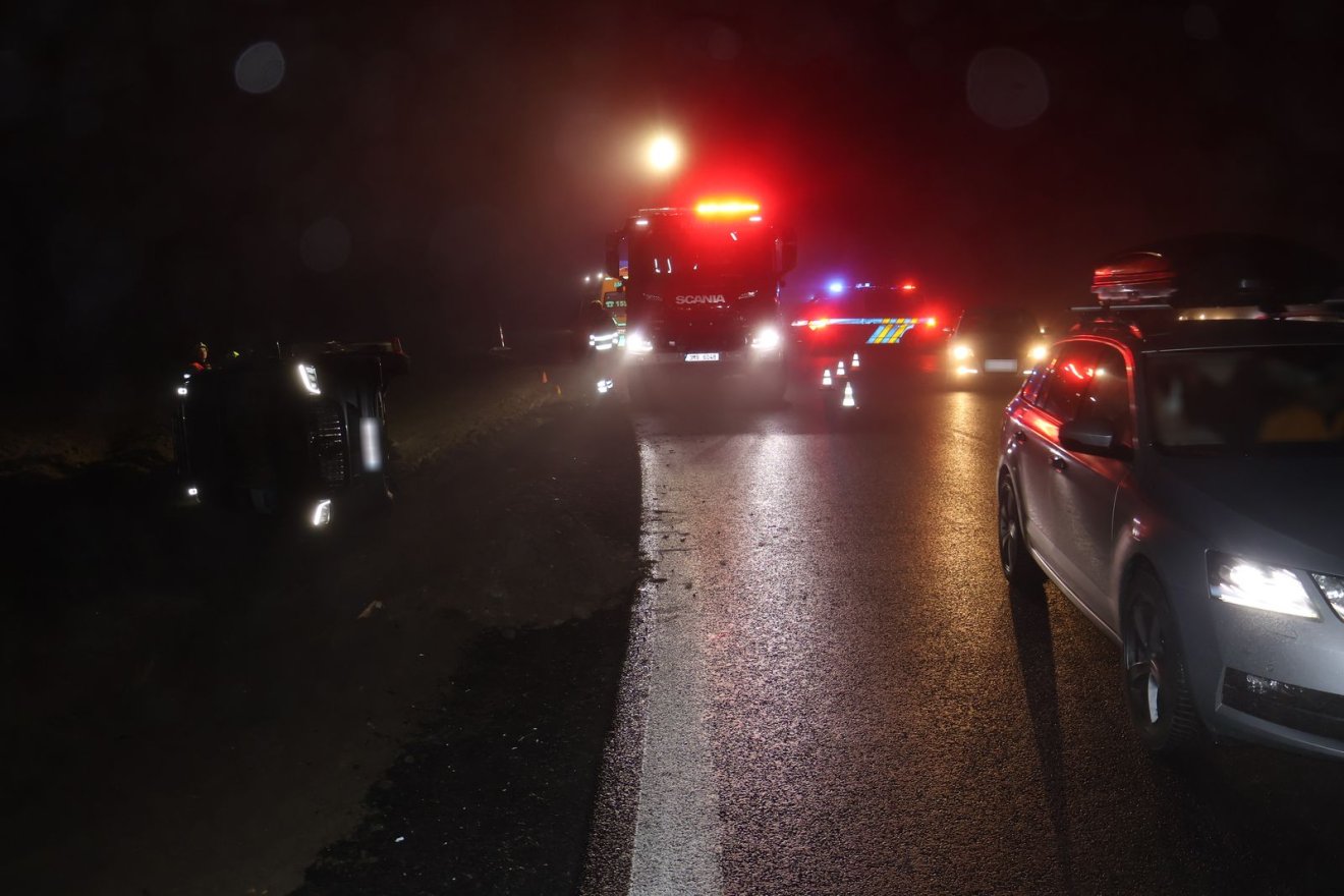 Včera krátce po 19. hodině došlo na silnici č. I/55 v katastru obce Majetín v blízkosti nově vznikajícího nájezdu na D55 ve směru jízdy na Kokory k havárii minibusu. Podle zjištěných informací 58letý řidič nepřizpůsobil rychlost jízdy stavu a povaze komunikace a vyjel s minibusem mimo silnici, kde se převrátil na pravý bok.