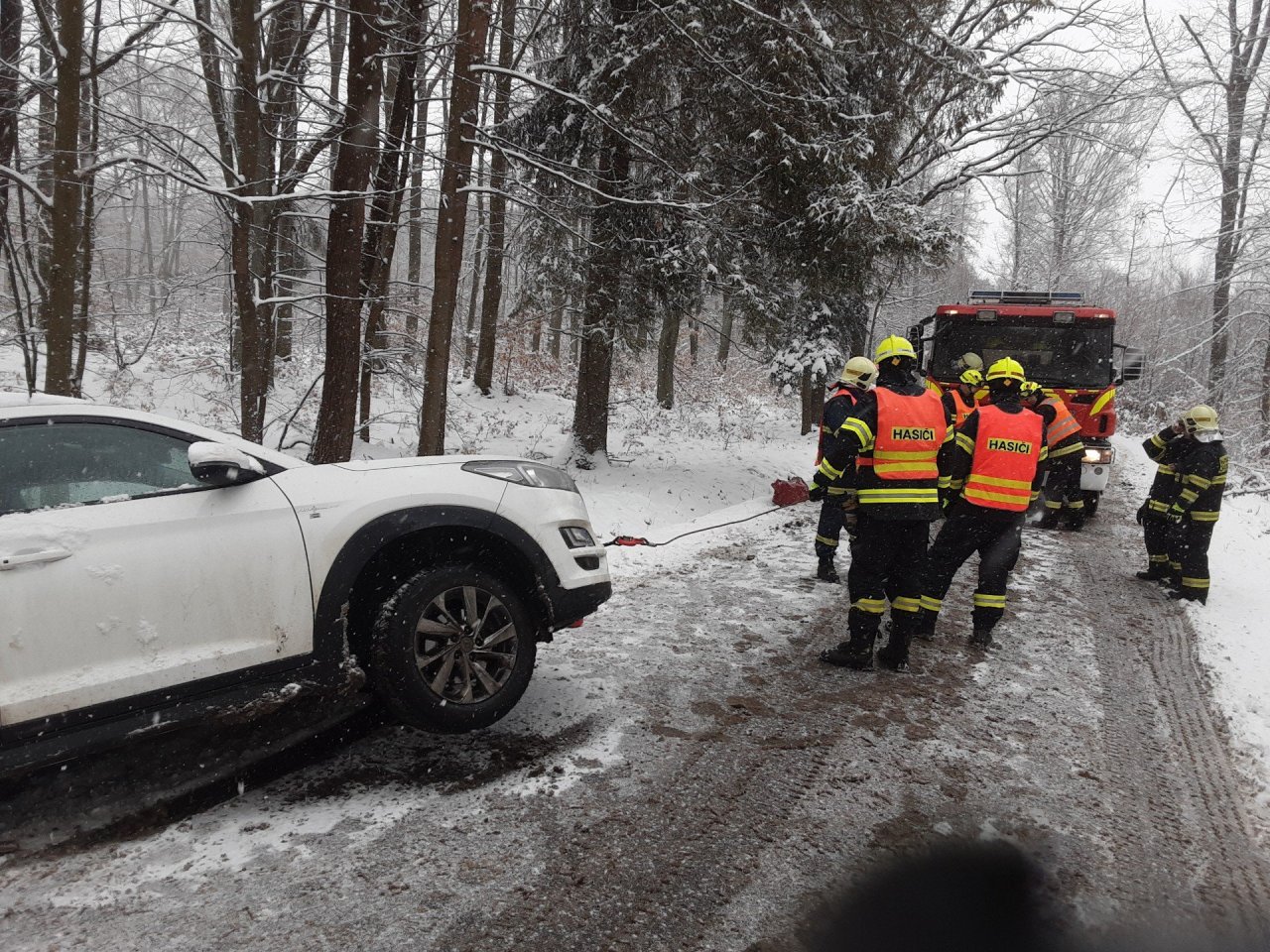 U Teplic nad Bečvou hasiči z příkopu navijákem vyprostili havarovaný terénní vůz, tato kolize se naštěstí obešla bez zranění.