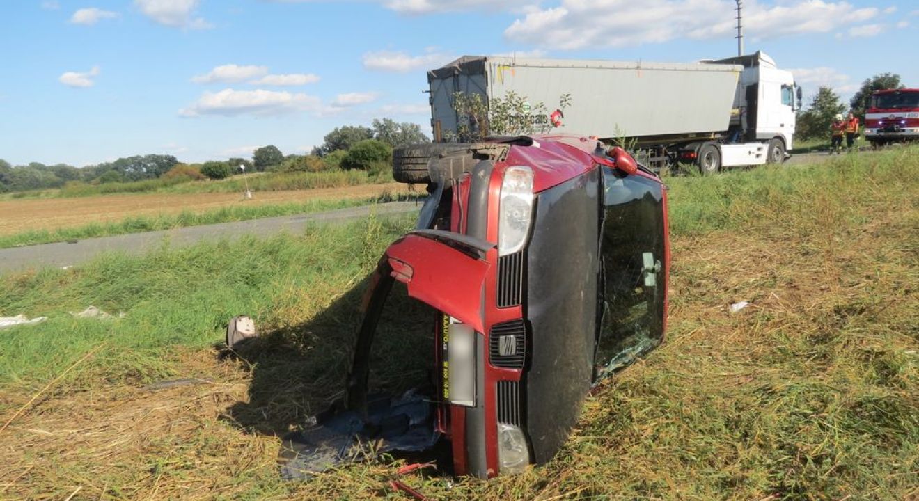 Mladý řidič přehlédl osobní auto, to skončilo v poli