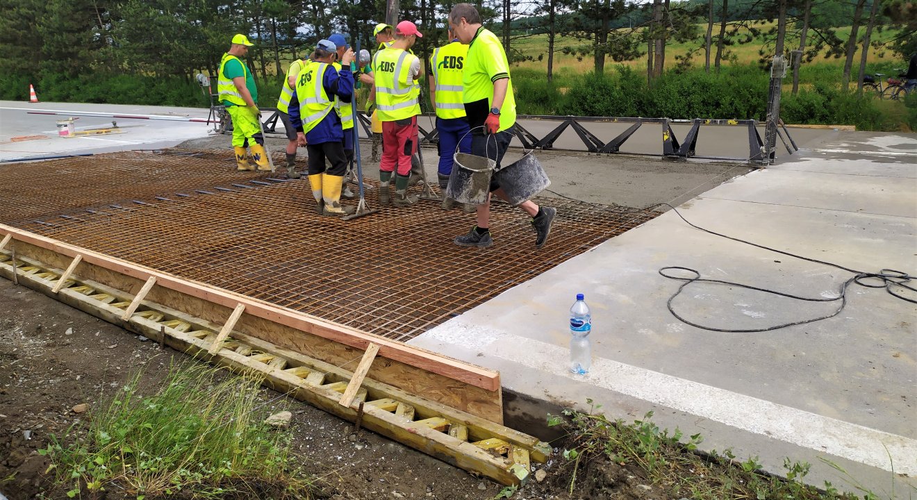 Oprava dálnice D35 po víkendovém popraskáni betonové konstrukce postupuje nejrychlejším možným tempem. Stavební firma začala řešit stav povrchu hned v neděli a v úterý 22. 6. už byla postižená místa zabetonována.