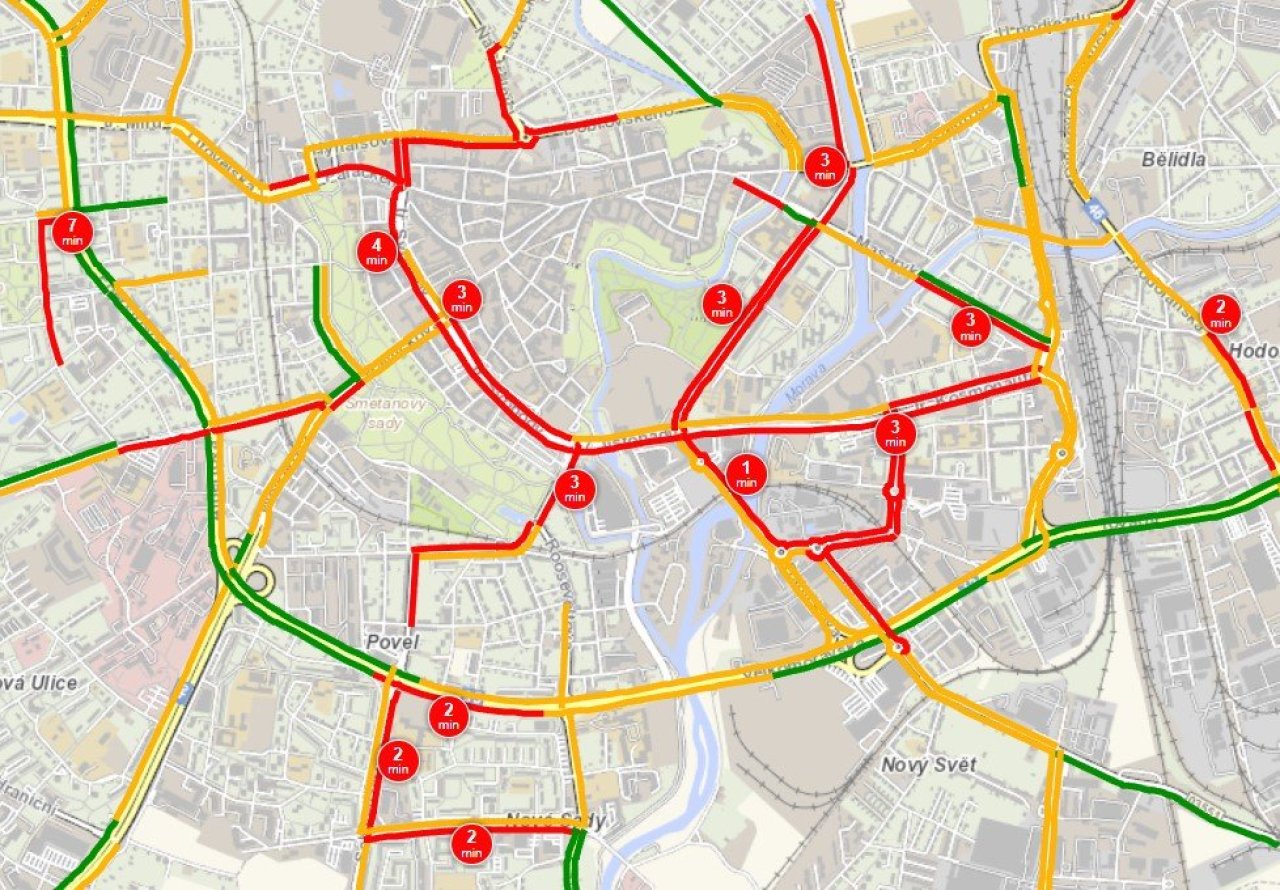 Na dálnici D35 na Mohelnici je podle webu dopravniinfo.cz dobré počítat se zdržením kolem 15 až 20 minut. Dálnice ve směru na Brno hlásí rovněž problémy a zdržení asi dvacet minut. U Vyškova komplikovala dopoledne plynulost dopravy vážná nehoda. Pomalejší je doprava také na silnicích v Olomouci, přiložená mapka ukazuje, že skoro všechny tahy městem jsou pomalejší než obvykle.