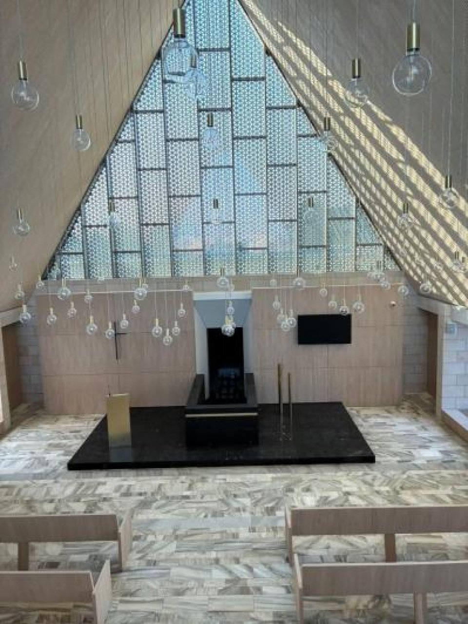 V rámci třetí etapy byly upraveny venkovní plochy – před vstupy byla položena velkoformátová žulová dlažba doplněná o novou zvonici. Mezi budovou a vstupem pro rodinu vznikla meditativní zenová zahrada, druhá je umístěna v atriu a dotváří atmosféru při příchodu rodiny i během smutečního obřadu.