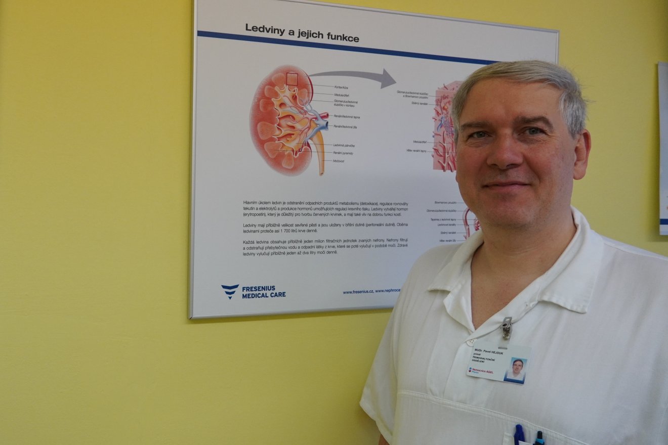 „Nemocné ledviny většinou nebolí, a proto pacienti často přicházejí k lékaři až ve chvíli, kdy je jejich funkce výrazně poškozena. Pokud je však onemocnění zachyceno včas, lze jeho průběh zpomalit a oddálit nutnost dialýzy i o několik let,“ vysvětluje MUDr. Pavel Hejduk, primář hemodialyzačního oddělení Nemocnice AGEL Přerov.